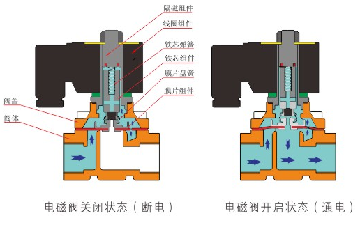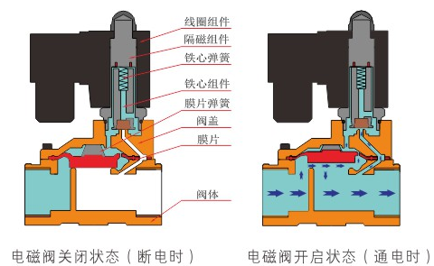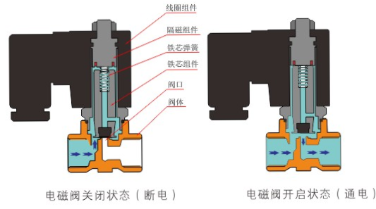 原理:开云体育-开云online(中国)直动式电磁阀分常闭型和常开型两种。常闭型电磁阀断电时为关闭状态,线圈通电时产生电磁力,动铁芯跟静铁芯吸合,电磁阀阀口打开,介质(流体)通过;当电磁阀线圈断电时电磁阀消失,在弹簧的作用力下,电磁阀动铁芯复位,阀口关闭,介质(流体)不同,电磁阀呈关闭状态。常开型与之相反。