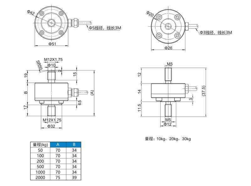 输出:1mv/V、0~±5/10V、4~20mA可选